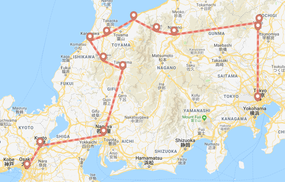 Make your way through Japan's mega city, Tokyo, explore Nikko's most famous sightseeing spots, and take a trip through the majestic highlands of Nagano, see the thirty six views of at Hokusai Museum, travel through the whole snowy plains with the Kurobe Alpine Route, step back in time in the Edo era style villages of Kanazawa and admire the landscaped gardens of Kenrokuen. Take a half day tour of Shirakawago, explore Takayama, stroll through the temples of Kyoto and visit the Toyota based city of Nagoya.